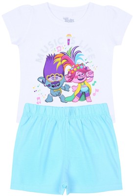 Pigiama estivo da ragazza di colore bianco-rosa Trolls Poppy e Brancha